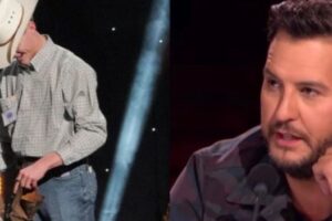A skinny 19-year-old cowboy stepped onto the stage looking like life had already knocked him around. His boots were scuffed, dusty, and worn down—like they’d walked a thousand hard miles. He didn’t give a big speech. He just took a shaky breath and started singing “Before the Next Teardrop Falls.”
